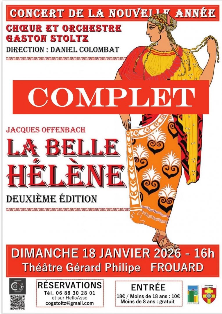 Après avoir incarné l'émouvante Missia de la Veuve Joyeuse en 2023, Gabrielle, la malicieuse gantière de la Vie Parisienne en 2024, et une Hélène magnifique l'an passé, Sabine Revault d'Allonnes retrouvera pour notre bonheur cette héroïne antique, qui fuit son pays pour l'amour d'un berger et va précipiter sa patrie dans la guerre. A ses côtés, Mathieu Septier sera un Pâris brillant et enjôleur, Emmanuel Prévot un Ménélas bougon mais malin et Nils Hollendieck un Calchas profiteur dont le seul but est de tirer son épingle du jeu. Chanteurs solistes, récitants, choristes et instrumentistes : plus de 100 personnes sur la scène du TGP de Frouard ! Pour ce Concert de la Nouvelle Année 2026, la musique d'Offenbach, interprétée par le Choeur et l'Orchestre Gaston Stoltz sous la direction de Daniel Colombat, entraînera les spectateurs dans un spectacle coloré, léger et spirituel, et pour tous les âges.
