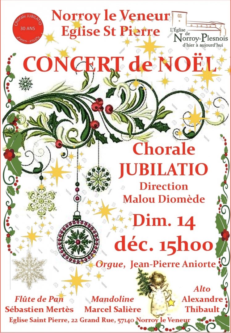 L'association ENPha de Norroy le Veneur vous invite à un concert de Noël le dimanche 14 décembre à 15h en l'église Saint-Pierre à Norroy-le-Veneur. La chorale Jubilatio (une cinquantaine de choristes), accompagnée par plusieurs instruments, orgue, violon alto, flûte de Pan et mandoline, se produira pour la première fois à Norroy-le-Veneur. L'église sera chauffée ; participation libre au panier pour la chorale. A l'issue du concert, l'association ENPha vous invitera à partager le verre de l'amitié.