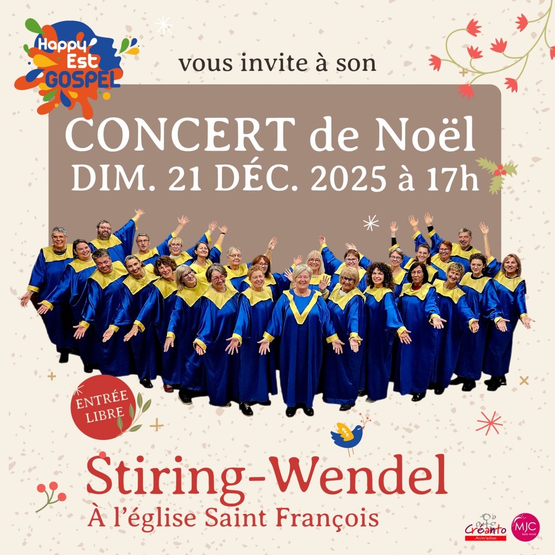 Happy'Est Gospel vous invite à venir célébrer Noël en chantant. Gospel africain et américain. Des chants Gospel emplis de lumière, d'émotion et de joie, pour célébrer ensemble l'esprit de Noël. On vous attend nombreux pour partager la magie de cette période. Votre présence fait toute la différence !