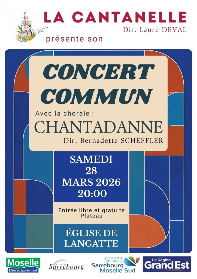 Dirigée par L. DEVAL, cheffe de choeur professionnelle, depuis 18 mois, la Cantanelle est un choeur mixte qui se produit dans le territoire de Sarrebourg, dans la région Grand est et même au-delà des frontières françaises. Elle présente un programme autour du thème Liberté, riche d'oeuvres tant classiques qu'issues de la variété française ou de culture extra-occidentale. Chantadanne est un choeur mixte dirigé par B. SCHEFFLER qui présente principalement des chants issus du répertoire français mais elle a également dans son répertoire des oeuvres classiques.