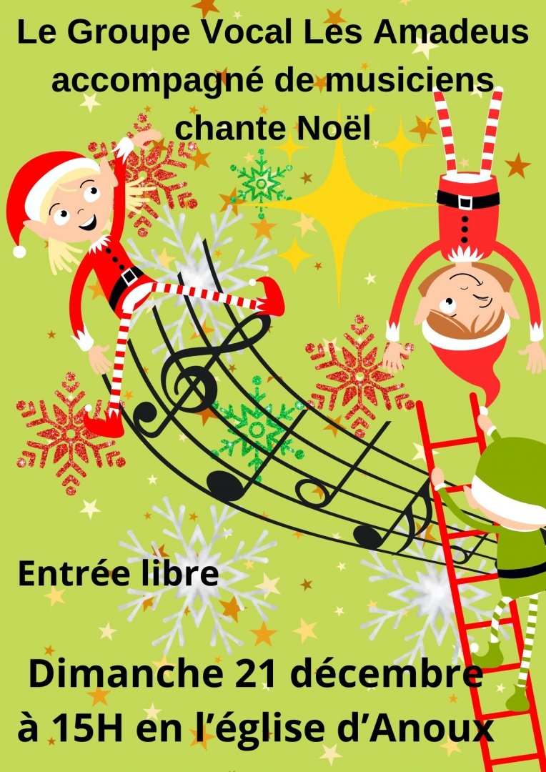 Le groupe vocal "Les Amadeus", accompagné de ses musiciens, chante Noël. Au programme : chants de Noël traditionnels tels qu'"Adeste Fideles" ou "Les Anges dans nos campagnes", mais aussi des arrangements de Noël version jazz. Le tout accompagné de violons, de saxophone, de flûte irlandaise, de percussions et de piano. Venez nombreux partager la joie de Noël avec nous !
