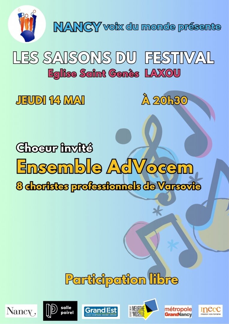 Dans le cadre des saisons du Festival, concert de l'ensemble AdVocem composé de 8 choristes professionnels venant de Varsovie.