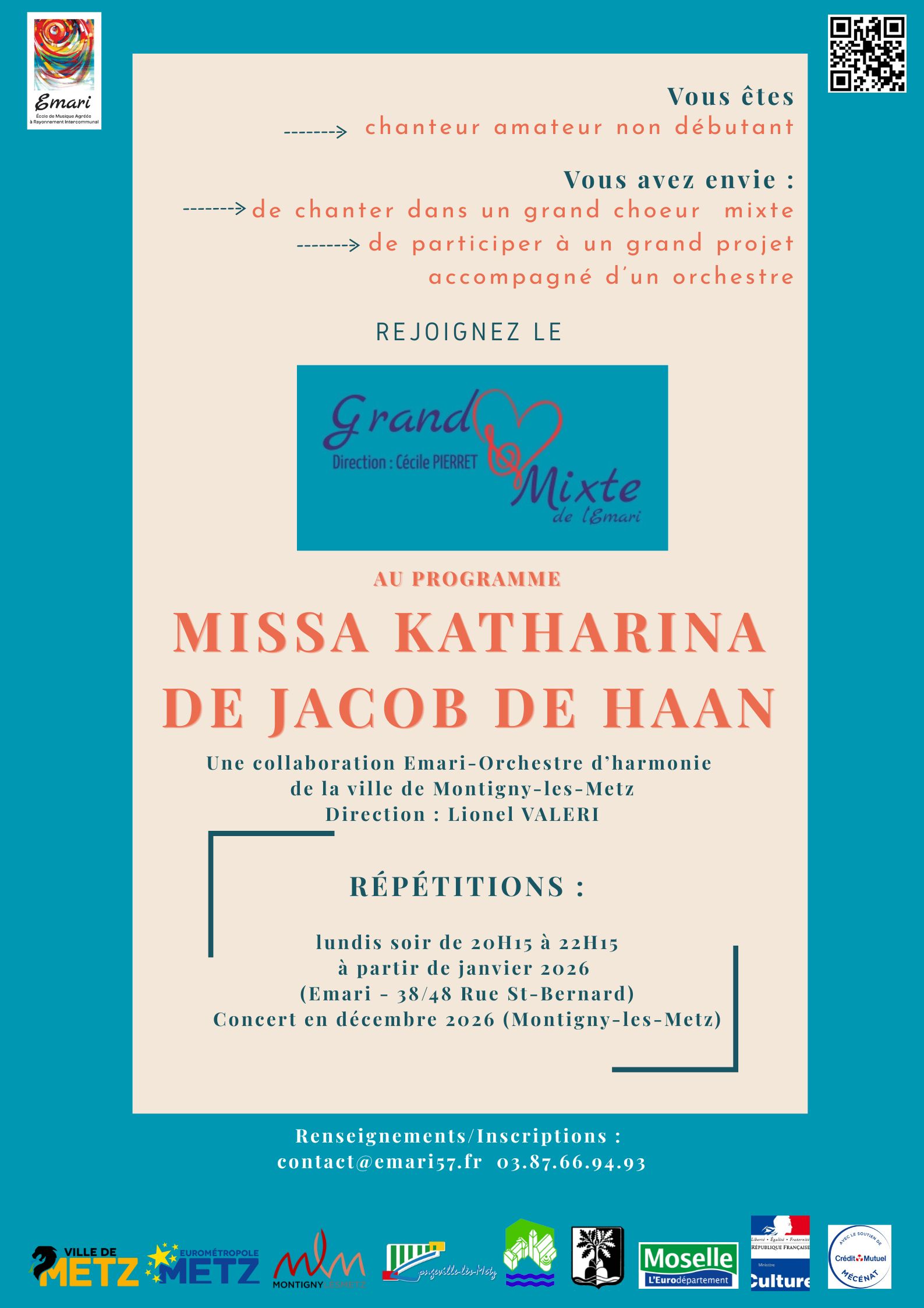 Les choeurs de l'EMARI recrutent. Adresse